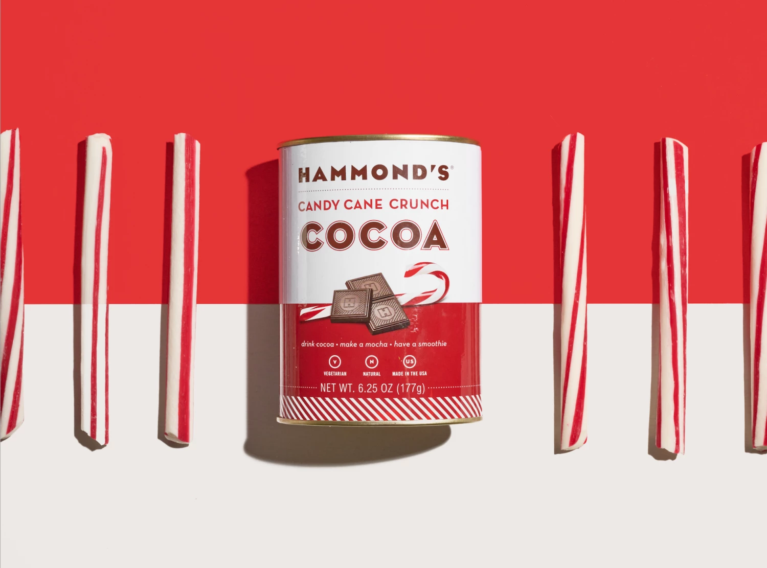 Get into the holiday spirit with Hammond’s Candy Cane Crunch Cocoa – the perfect treat for winter or Christmas. Made with rich, all-natural ingredients, this cocoa is sure to become a holiday tradition in no time. Simply mix the hot chocolate mix in a tall mug of hot milk and enjoy a deliciously rich, creamy, and peppermint packed drink. Perfect for warming up on a cold winter night, Candy Cane Crunch Cocoa is the ultimate holiday indulgence. So, celebrate the season with a cup of our Candy Cane Crunch Cocoa and create new memories with your loved ones.