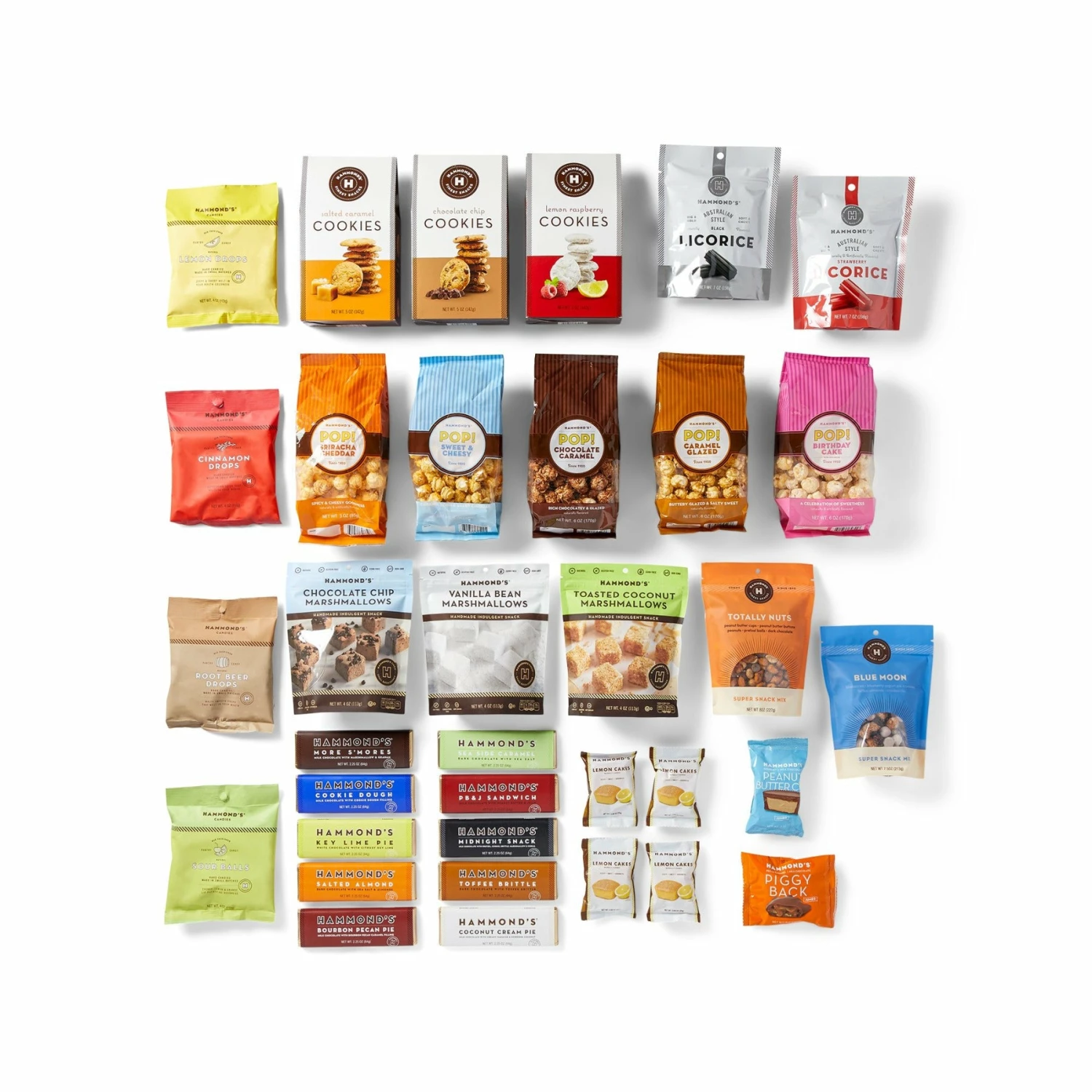 Looking for an extraordinary gift that truly goes big? Look no further than the Deluxe Hammond’s Gift Box! This magnificent gift box is packed with a delightful array of Hammond’s most scrumptious candies, chocolates, and snacks, making it the perfect present for birthdays, celebrations, thank you’s, and corporate gifting. And it’s so big that it’s perfect for sharing with the entire family! Inside this deluxe gift box, you’ll discover a wide assortment of delicious treats, including: