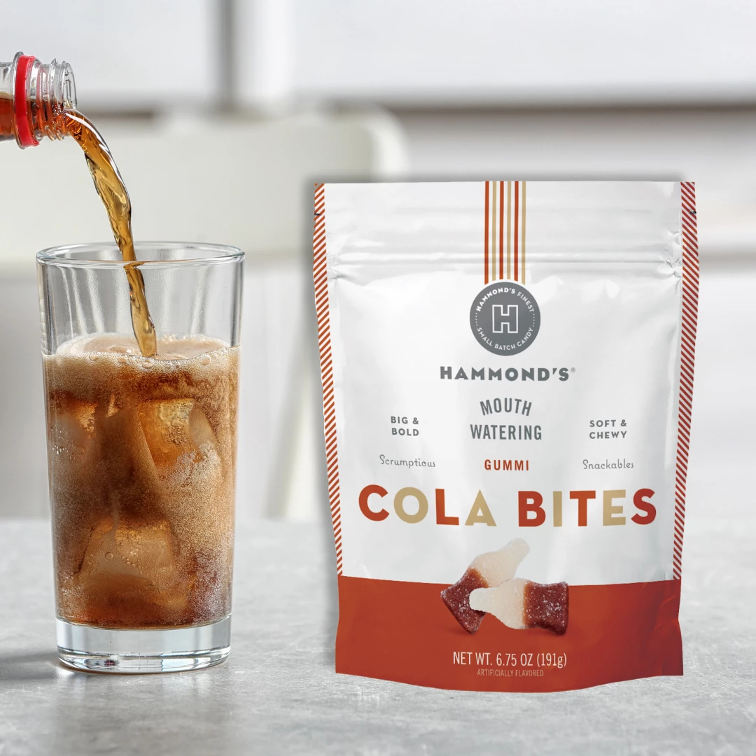 Quench your sweet cravings with Hammond’s Gummi Cola Bites, the perfect blend of cola flavor and chewy goodness! These bite-sized gummies are packed with the classic taste of your favorite cola drink, giving you a burst of refreshment with every bite. Whether you’re a cola enthusiast or simply seeking a delicious treat, Hammond’s Gummi Cola Bites are sure to satisfy your taste buds. With their irresistible flavor and convenient size, they’re perfect for snacking on the go or sharing with friends. Experience the fizzy, cola-infused delight of Hammond’s Gummi Cola Bites today and treat yourself to a memorable candy experience!