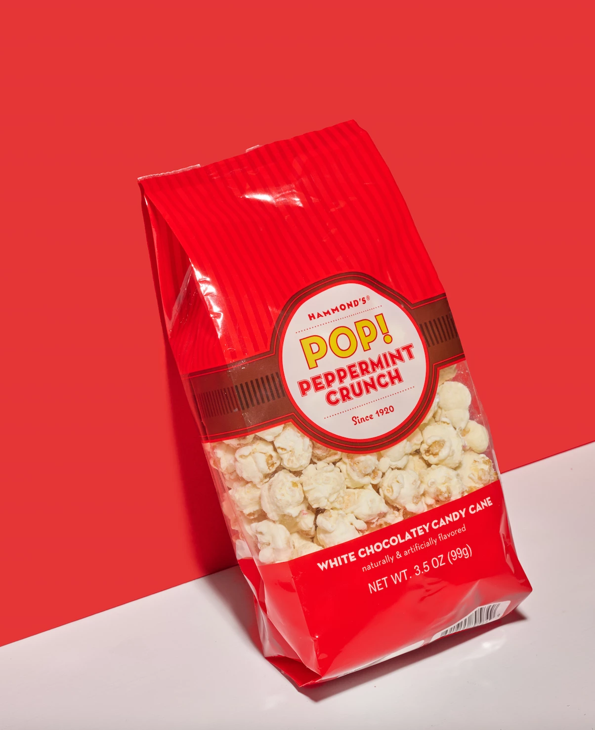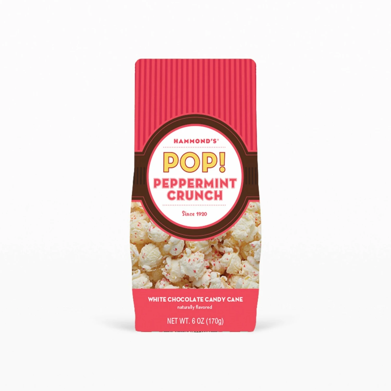 Please note: Hammond’s Popcorn is handmade and the size may vary. Manufactured in a facility that processes egg, milk, mustard, peanuts, sesame, soy, sulfites, tree nuts, and wheat. Red peppermint flakes may not appear but popcorn will taste the same.Â