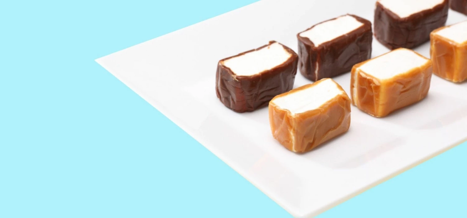Indulge in the irresistible taste of our bite-sized Caramel Marshmallows, featuring a creamy caramel coating around a soft, fluffy marshmallow center. Perfect for snacking or satisfying your sweet tooth, these treats are so delicious, you won’t be able to stop at just one! If you love the combination of sweet caramel and marshmallow, then our Caramel Marshmallows are the perfect treat for you. Each caramel is individually wrapped, ensuring freshness and convenience on the go. Get ready for some sticky fingers and order now to experience the ultimate in caramel marshmallow goodness!