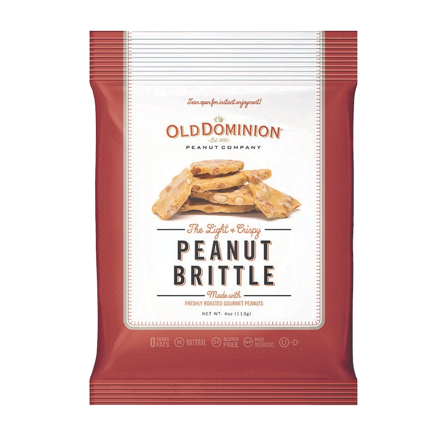 Please note: Old Dominion Peanut Brittle is handmade and the size, picture, and shape may vary. Manufactured in a facility that processes egg, milk, mustard, peanuts, sesame, soy, sulfites, tree nuts, and wheat.Â