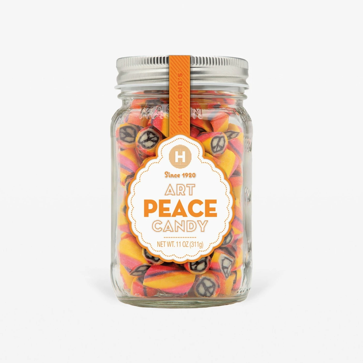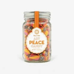 Spread the message of peace with our delicious handmade peace art candy! Our reusable mason jars keep the candy fresh, so you can enjoy them every day. The fruity grape flavor of our Peace Art Candy Mason Jars is sure to satisfy your taste buds. With fashion-forward peace signs, our candy also sends an important message. Get your daily dose of peace with our unique Peace Art Candy Mason Jars!