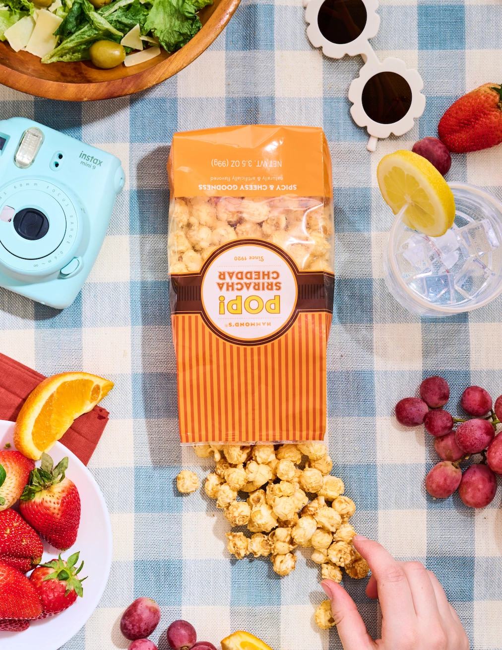 Looking for a tasty and spicy snack to satisfy your cravings? Look no further than Hammond’s Sriracha Cheddar Popcorn! Our mouth-watering popcorn is infused with the perfect blend of spicy sriracha and savory cheddar cheese flavors, making it the perfect snack for any occasion. With just the right amount of heat, it’s sure to be an instant favorite. Whether you’re enjoying it as a quick snack, adding it to your movie night spread, or sharing it with friends and family, our Sriracha Cheddar Popcorn is a delicious and satisfying choice.