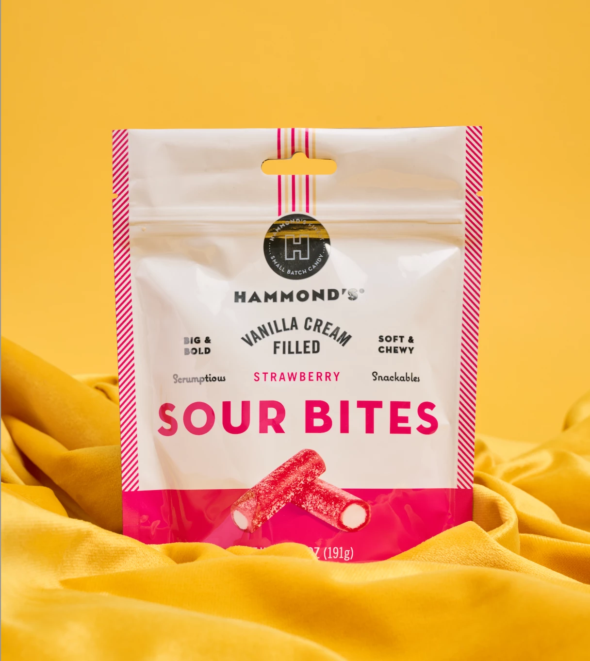 Discover the delightful combination of tangy and creamy flavors with Hammond’s Strawberry Sour Bites Filled with Vanilla Cream. These bite-sized treats are bursting with the irresistible taste of fresh strawberries and a luscious vanilla cream filling. Each bite offers a tantalizing balance of sourness and sweetness, creating a delightful flavor explosion in your mouth. Perfect for satisfying your sweet tooth, Hammond’s Strawberry Sour Bites Filled with Vanilla Cream are a must-try for candy enthusiasts. Share them with friends or savor them all to yourself. Once you experience this perfect blend of fruity and creamy goodness you won’t go back!